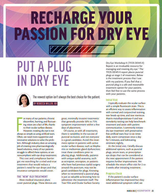 Dr. Rebecca Miller is a nationally recognized speaker in advanced cataract and refractive surgery, with more than a decade of experience in high-volume surgical centers. She has published in leading Optometry and Ophthalmology journals and has held key leadership roles—including Research Director, CE Speaker, Referral Coordinator, and Marketing Director—helping to drive the growth of eye care practices across Texas.